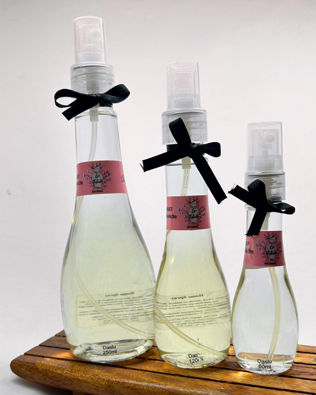 Aromatizador spray para tecidos e ambiente na embalagem plástica de 250 ml com sua fragrância preferida.
